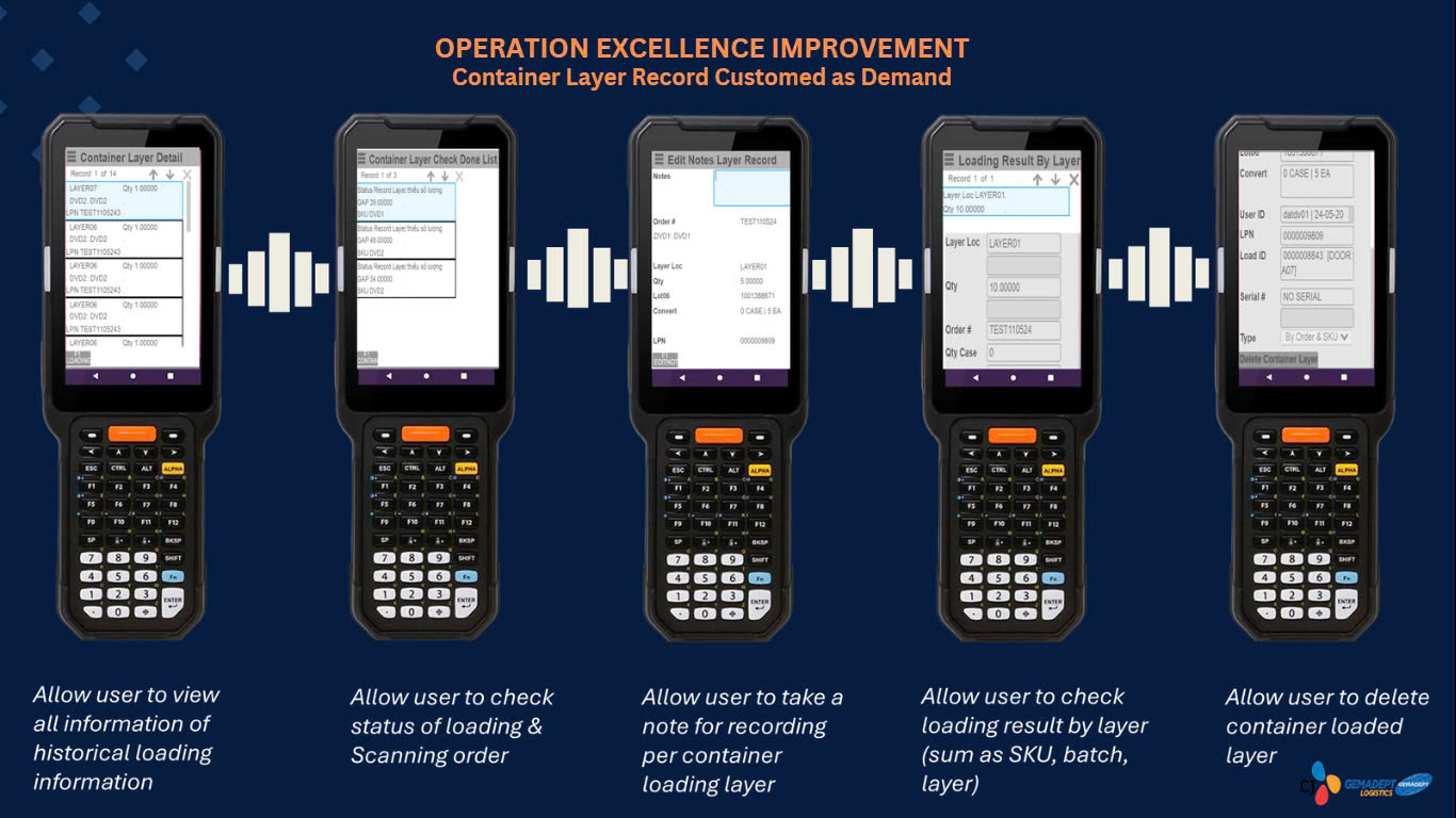 • Introduced a pioneering solution for recording Loading in Containers during the export phase, digitizing operations from manual recording to system-based logging (PDA devices).